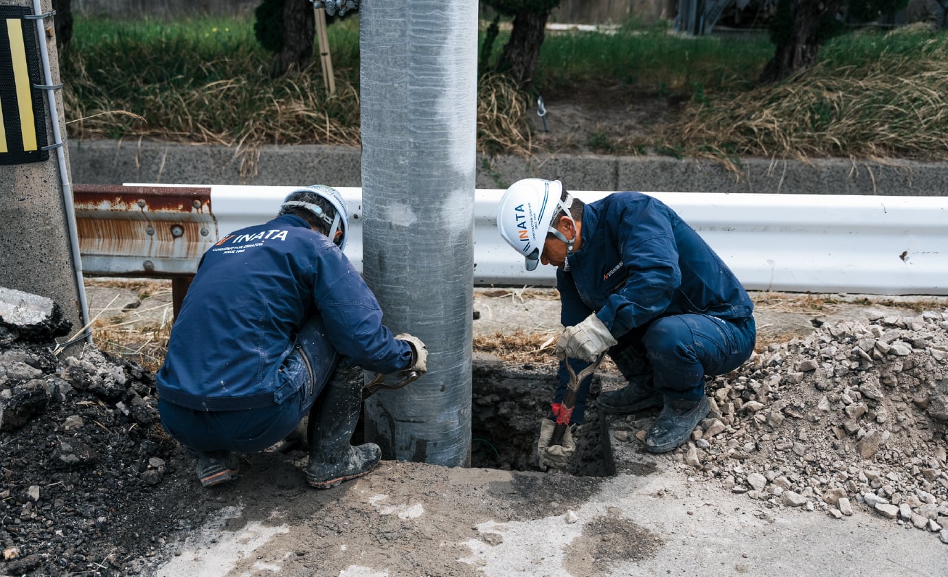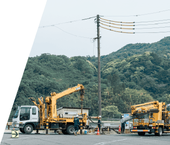 毎日の暮らしに欠かすことの出来ない電力を供給するコンクリートポールの建柱工事を行います。架空ケーブルを支える柱をはじめ、照明柱、太陽光発電の引込柱などを取り扱っています。